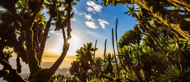The reason I had insisted on leaving so early was to find somewhere to photograph the sunrise. That didn’t quite work out, but I found this spot not much later. I’m not entirely sure why I like this image so much, but part of it is that it shows the beauty of the Virunga volcanoes in an unconventional way. The view is visible, but not the main focus. A wide angle (16mm) instead puts brings the viewer’s attention to the foreground, the mountain’s very particular flora, beautifully lit by the rising sun. The position of the sun itself pays approximate homage to the so-called rule of thirds (divide the photo with two horizontal and two vertical lines; the four meeting points are roughly where you want your most important subjects to be).