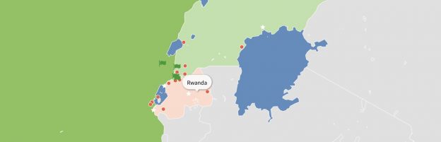 After a couple of hours of work, the map of Gorilla Highlands attractions looked pretty neat (the screenshot above shows the WordPress working environment). Still, if you know anything about our geography, you will notice a major feature missing — the lakes! Carlos went out of his way to find us a suitable geoJSON file with African lakes, made by a WorldBank employee Naichen Zhao. This was then laid over the map …
