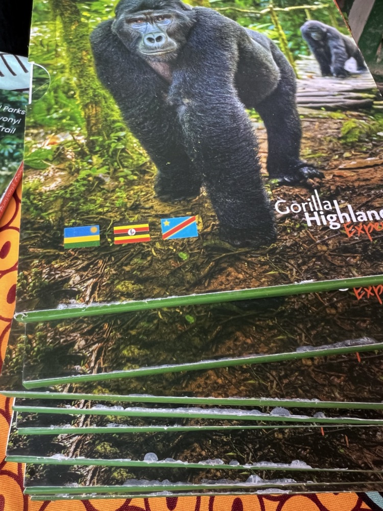 Each distribution pack contains 30 booklets, so we could supply only 20 partners. Choosing them wasn’t simple. We focused on the main travel centres of the region: Buhoma, Entebbe, Kabale, Kampala, Kigali, Kisoro, Lake Bunyonyi, Musanze and Rubavu (click for the full list on the Pocket Treasure project page).