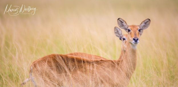 Personally I am a big fan of their ears, and for photography I try to find small groups where all ears point in the same direction — preferably mine. More than one individual is also nice since they can create nice symmetry and patterns when standing together. A low angle is generally helpful if I want to blur the background; that way it becomes less of a distraction. I photographed these Ugandan kob in Ishasha (Queen Elizabeth National Park, Uganda).